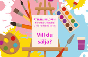 Helgen den 7-8 februari kl 11-16 är det Återbruksloppis med konstnärsmaterial VILL DU SÄLJA? Samma helg, tid och plats som det är temautställning ”Gyllene tider”